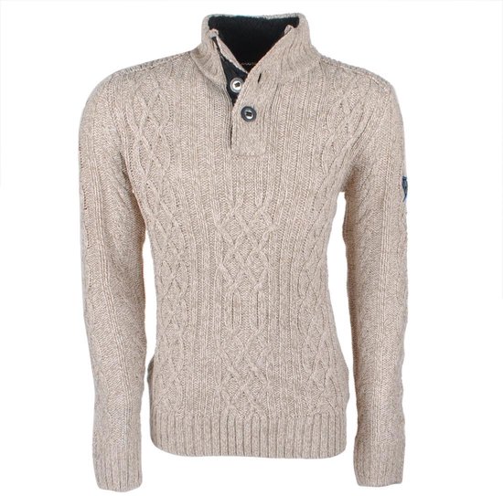 MZ72 Heren Kabeltrui Grof Gebreid Model Soground Met Teddy Kraag Beige | bol