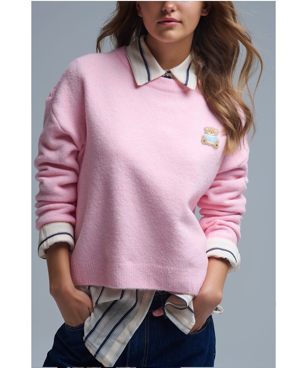rui Teddy Bear – Zachte Gebreide Damestrui met hip Beer Detail