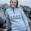 Noorse trui met brede ribboordjes in mos/lindegroen gemêleerd | Witt