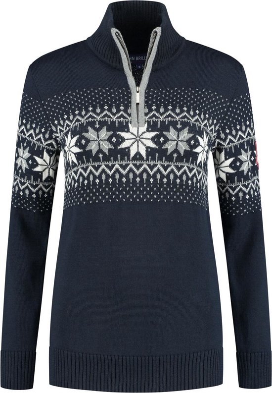 John Brilliant Noorse dames trui fijn gebreid Merino wol donkerblauw | bol
