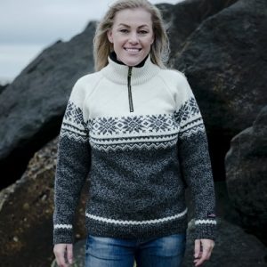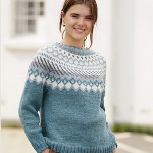 Noorse trui van puur katoen in nachtblauw/kers gedessineerd | Witt