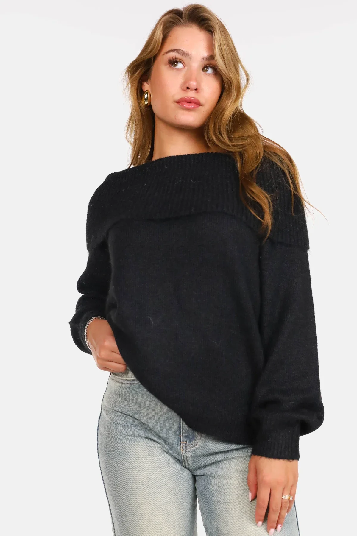 Gebreide trui off shoulder zwart
