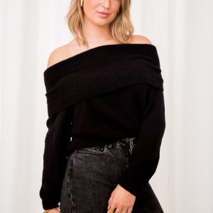 Gebreide trui off shoulder zwart
